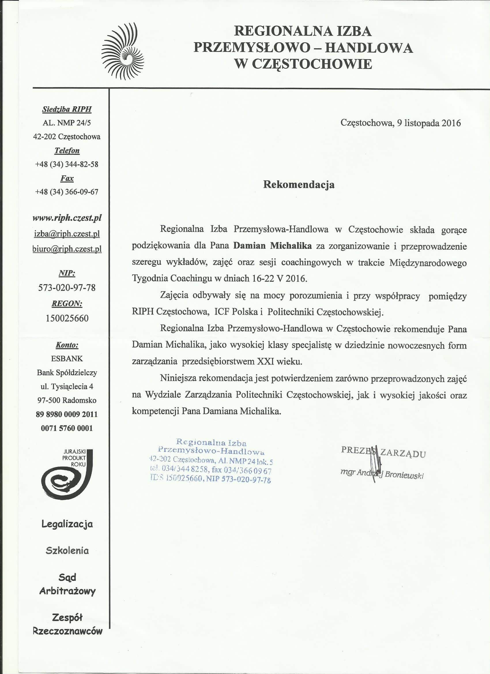 Znakomity coach i trener. Damian prowadził dla mojego zespołu szkolenie i coaching zespołowy. Zarówno w jednym, jak i drugim przypadku nikt z nas nie spojrzał nawet na zegarek, czas upłynął bardzo szybko, a co ważne – po raz pierwszy miałem wrażenie, że uczestniczyłem w czymś niezwykłym. Szczególnie polecam coaching zespołowy, perfekcyjnie prowadzony i pilnowany, każdy z nas mógł wcielić się w rolę coacha, a nad właściwym przebiegiem czuwał Damian. To doświadczenie zrodziło wiele nowych pomysłów i rozwiązań. Naprawdę warto dobrze zapłacić.